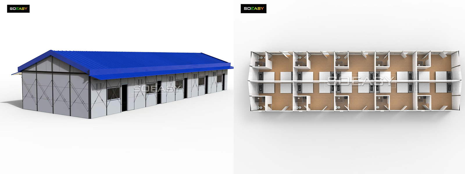 Agencements entièrement personnalisables : À partir d'un format compact Dortoir De l'espace de travail spacieux à un bureau de chantier, nos structures s'adaptent à vos besoins. Nous personnalisons la taille et l'agencement en fonction de vos effectifs et de vos exigences opérationnelles, garantissant ainsi votre Camp de travail est optimisé pour la fonctionnalité.